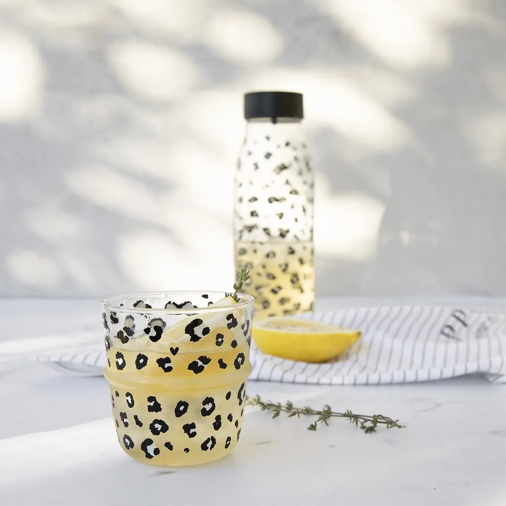 2er Set Karaffe Mit Deckel LEO + WATER H. 26cm 1000ml Glas Bastion Collections