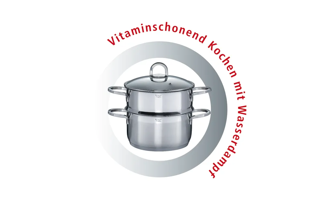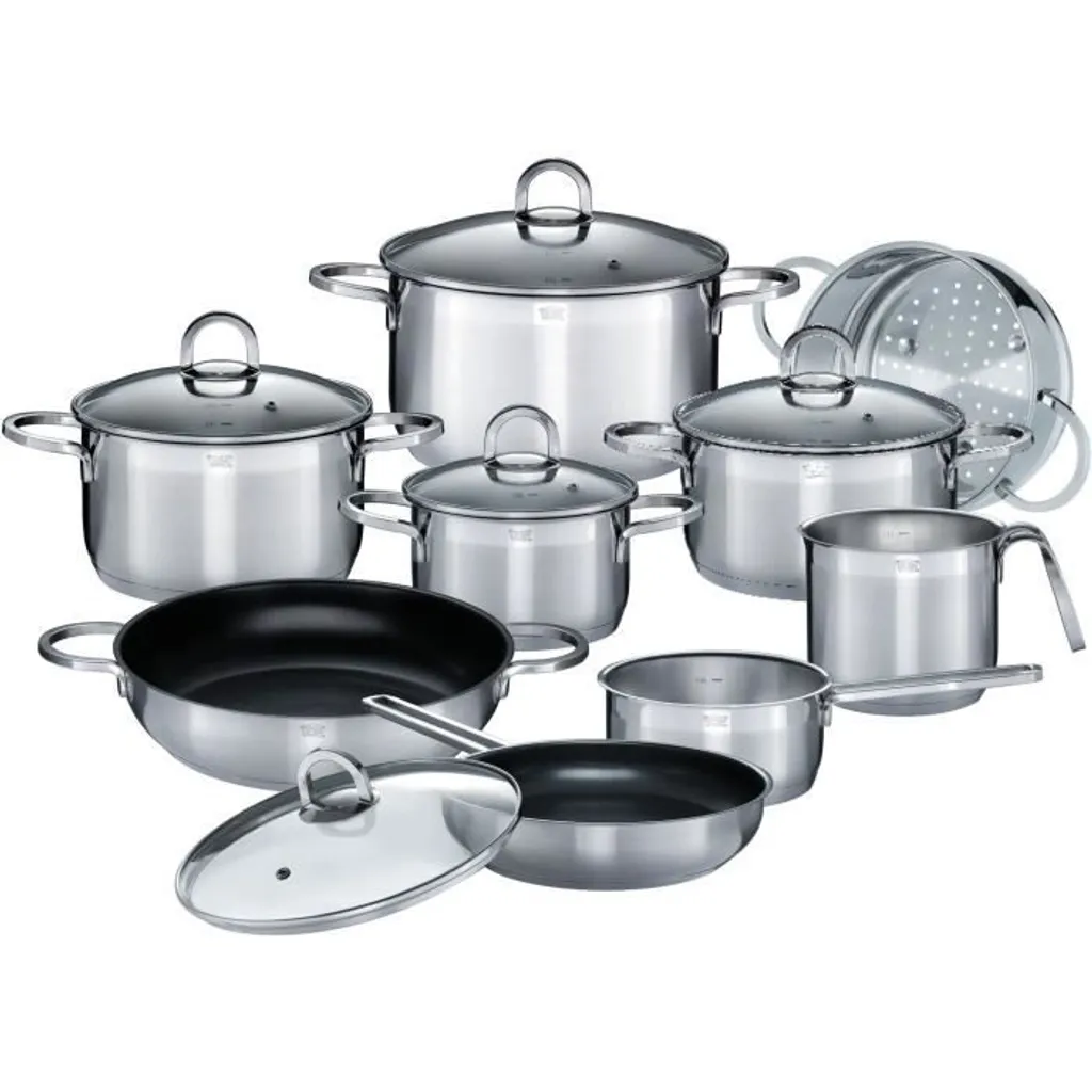 GSW Kochtopf-Set Alara 14 Tlg., Edelstahl Rostfrei 18/8, Glas, Bratentopf Mit Glasdeckel ø Ca. 20 X H 11,0cm / Fleischtopf Mit Glasdeckel ø Ca. 16 X H 10,0cm / ø Ca. 20 X H 12,0cm / ø Ca. 24 X H 14,0cm / Bratpfanne Mit Glasdeckel ø Ca. 24 X H 6,0cm / Servierpfanne ø Ca. 28 X H 7,0cm / Stielkasserolle ø Ca. 16 X H 8,0cm / Milchtopf ø Ca. 14 X H 12,5cm / Dämpfeinsatz Ca. 20 X H 10,0cm