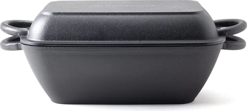 Hanseküche Gusseisen Bräter – Bereits Eingebrannter Gusseisen Topf 2in1 Mit Deckel, Gusseisenpfanne, Brotbackform Zum Brotbacken, Hochwertige Grillpfanne