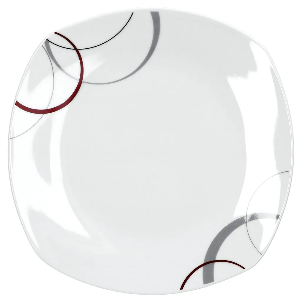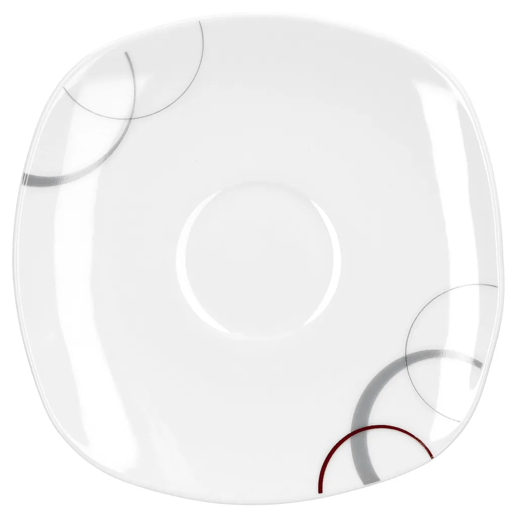 Kaffeeservice Palazzo 18tlg. – Weiß MitNachbildung-Kreisen In Grau Und Dunkelrot – Für 6 Personen