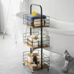 SoBuy® Servierwagen,Küchenwagen Mit Korb Und Flaschenablage,Bambus, FKW53-N