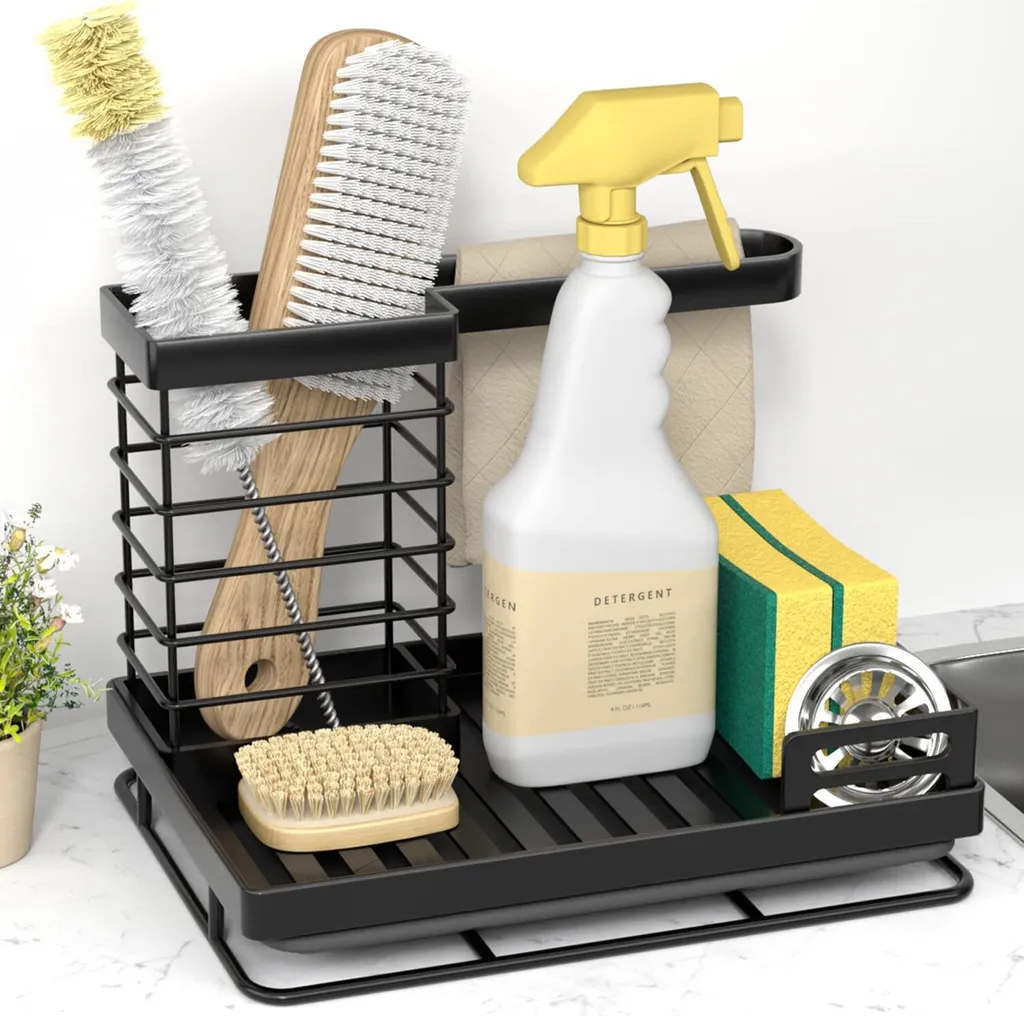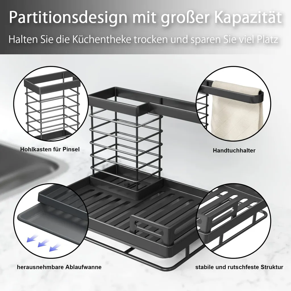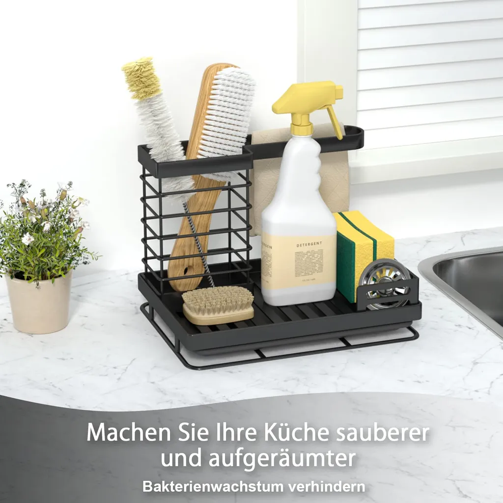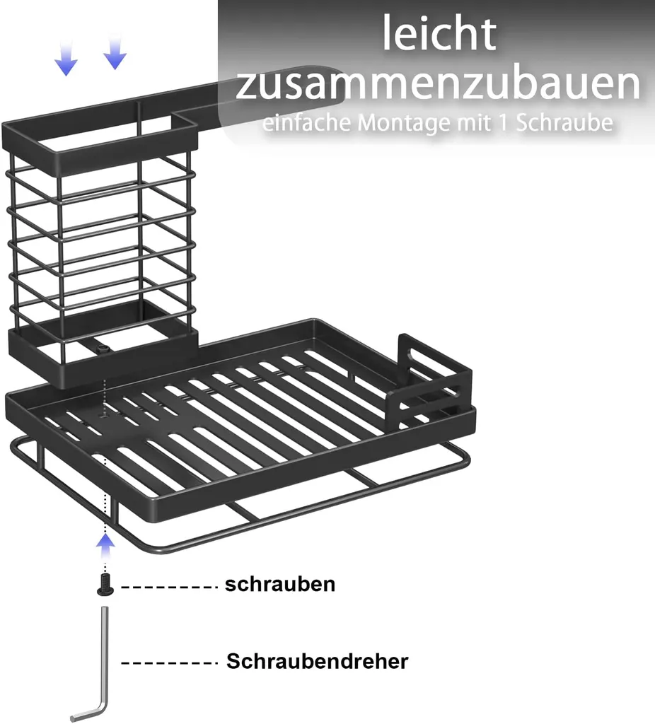 Küchenregale Mit Abtropfschale Edelstahl Schwarz Premium Design, 25 X 15 X 17 Cm Utensilienhalter Küche Mit Weizenstroh&Abtropfbehälter&Schwammhalter
