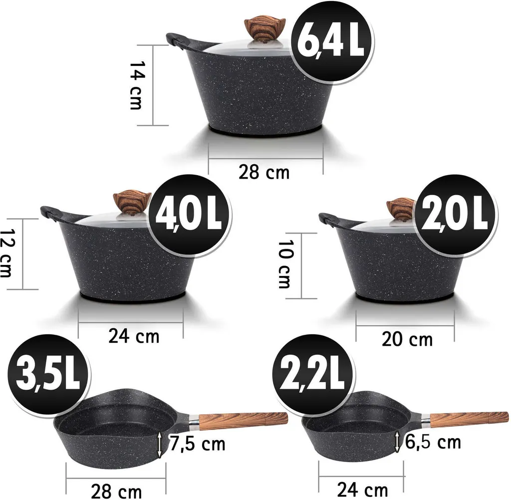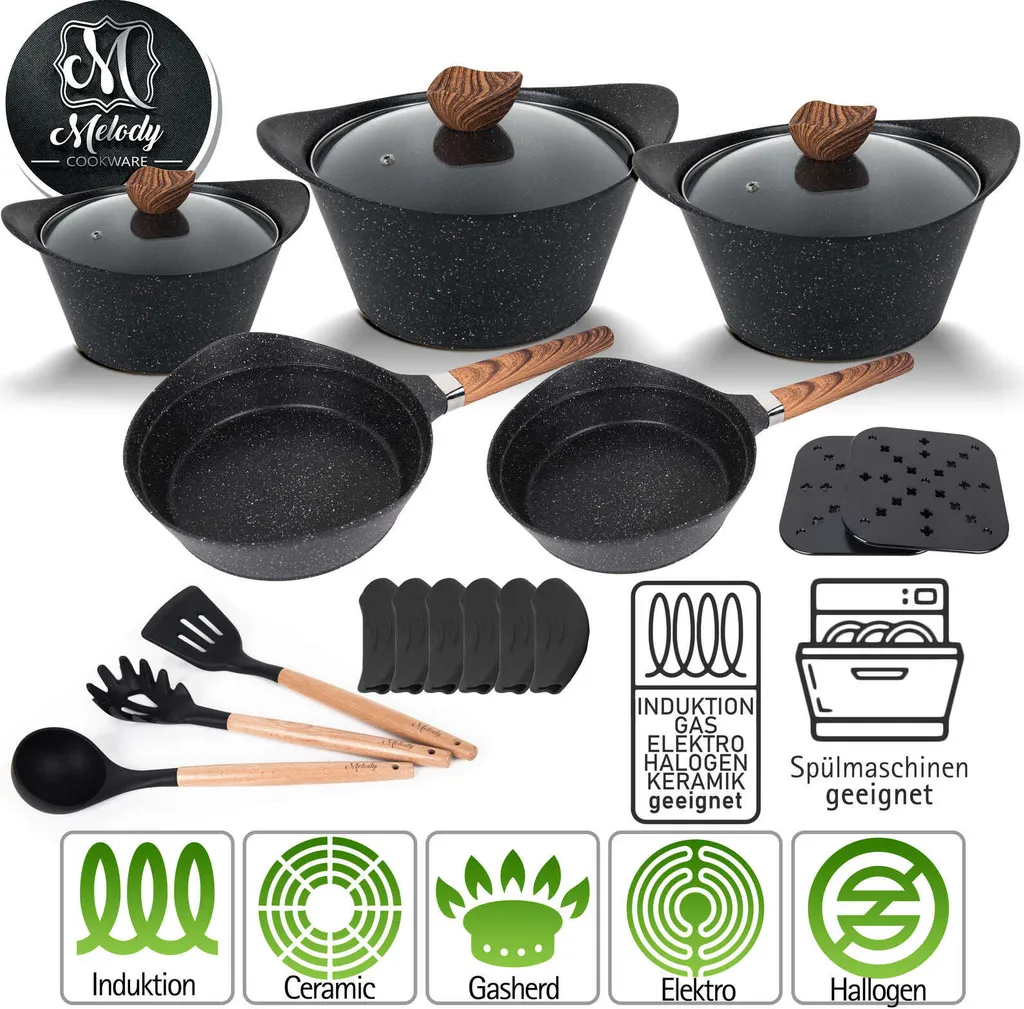 Melody Topfset Nero Antihaft Alugus Pfannen-Set Topf-Set Töpfe Bratpfannen 19-Teilig #3022