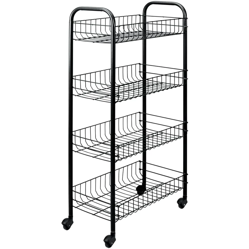 MetalTex Servierwagen Mit 4 Körben Küchenwagen Küchentrolley Schwarz/Weiß