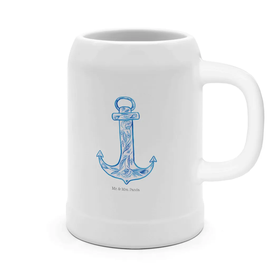 Mr. & Mrs. Panda Bierkrug Anker Blau – Weiß – Geschenk, Tiere, Gute Laune, Bierkrüge, Bierkrug Steingut, Süße Tiermotive, Lustige Sprüche, 5 L, 500ml