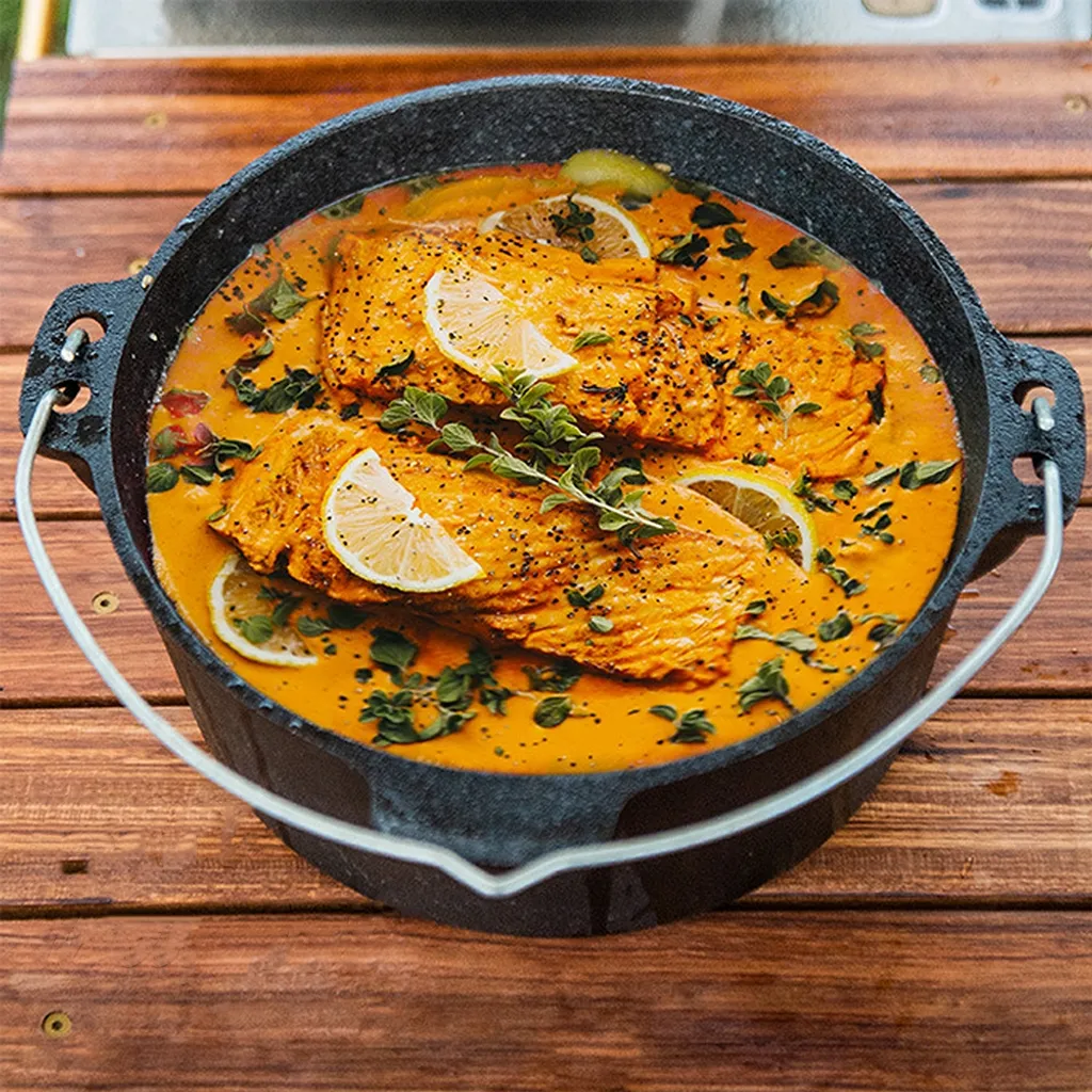 Mucola Gusseisen Feuertopf Gusstopf Inkl. Deckelgriff 2in1 Kochtopf & Pfanne 9,0L Dutch Oven Potjie Camping Kochgeschirr