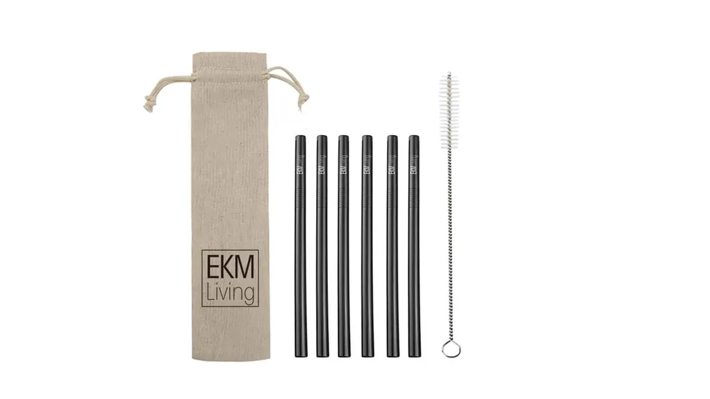 Nachtmann Noblesse 6er-Set Black Edition Whisky Gläser 295 Ml I Spülmaschinenfest I Wasserglas Coloured By EKM (schwarz/kupfer) + 6er-Set EKM Living Trinkhalme Schwarz