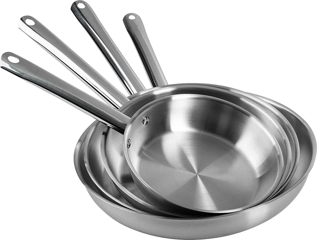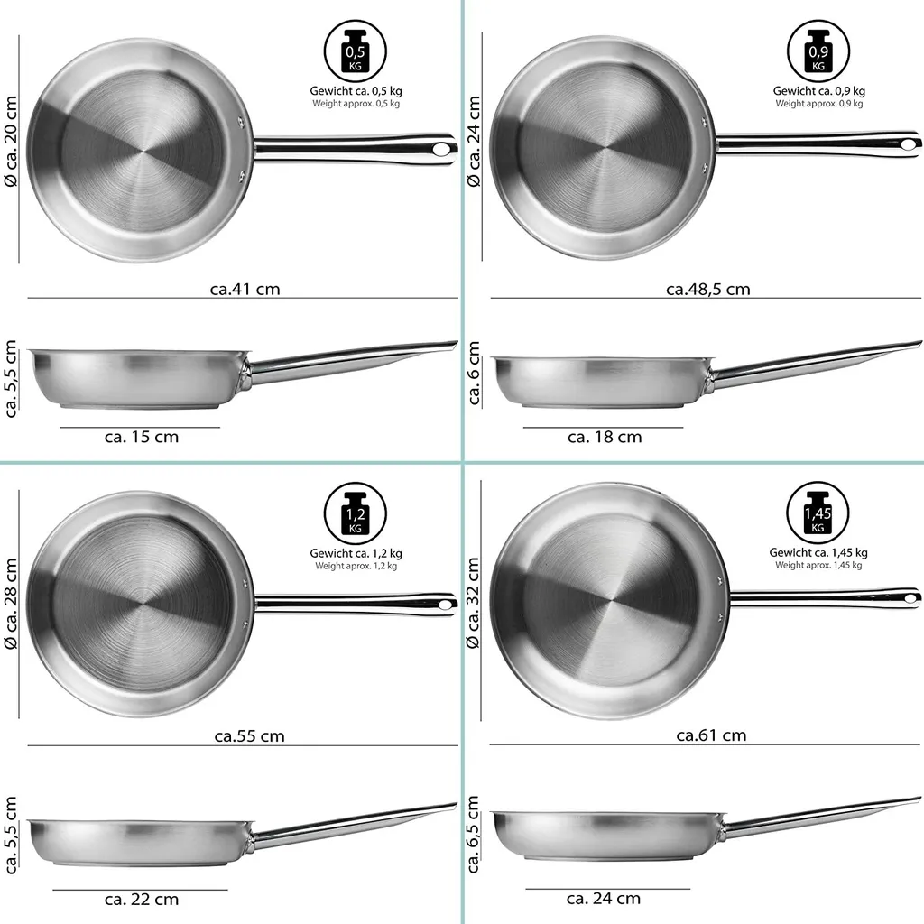 ONVAYA® Edelstahlpfannen-Set | Bratpfanne | Ohne Beschichtung | Induktion & Backofengeeignet | Profipfannen Komplettset | Ø 20/24/28/32cm