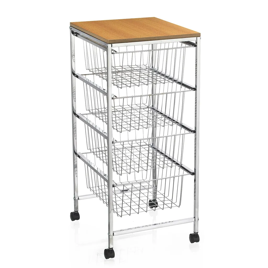 Servierwagen RONJA Küchenwagen Küchentrolley Beistellwagen Verchromt Auf Rollen, 4 Drahtkörbe