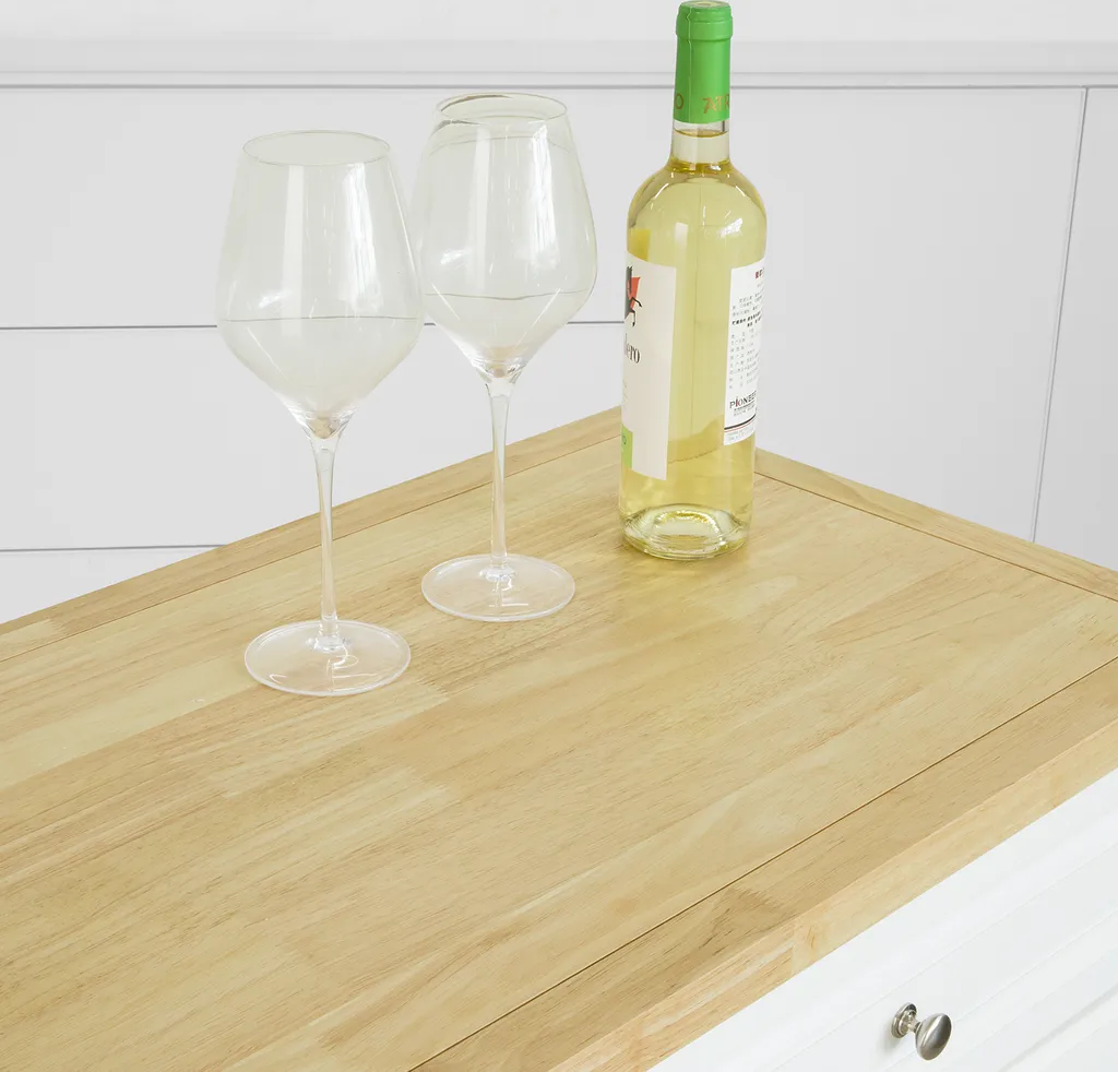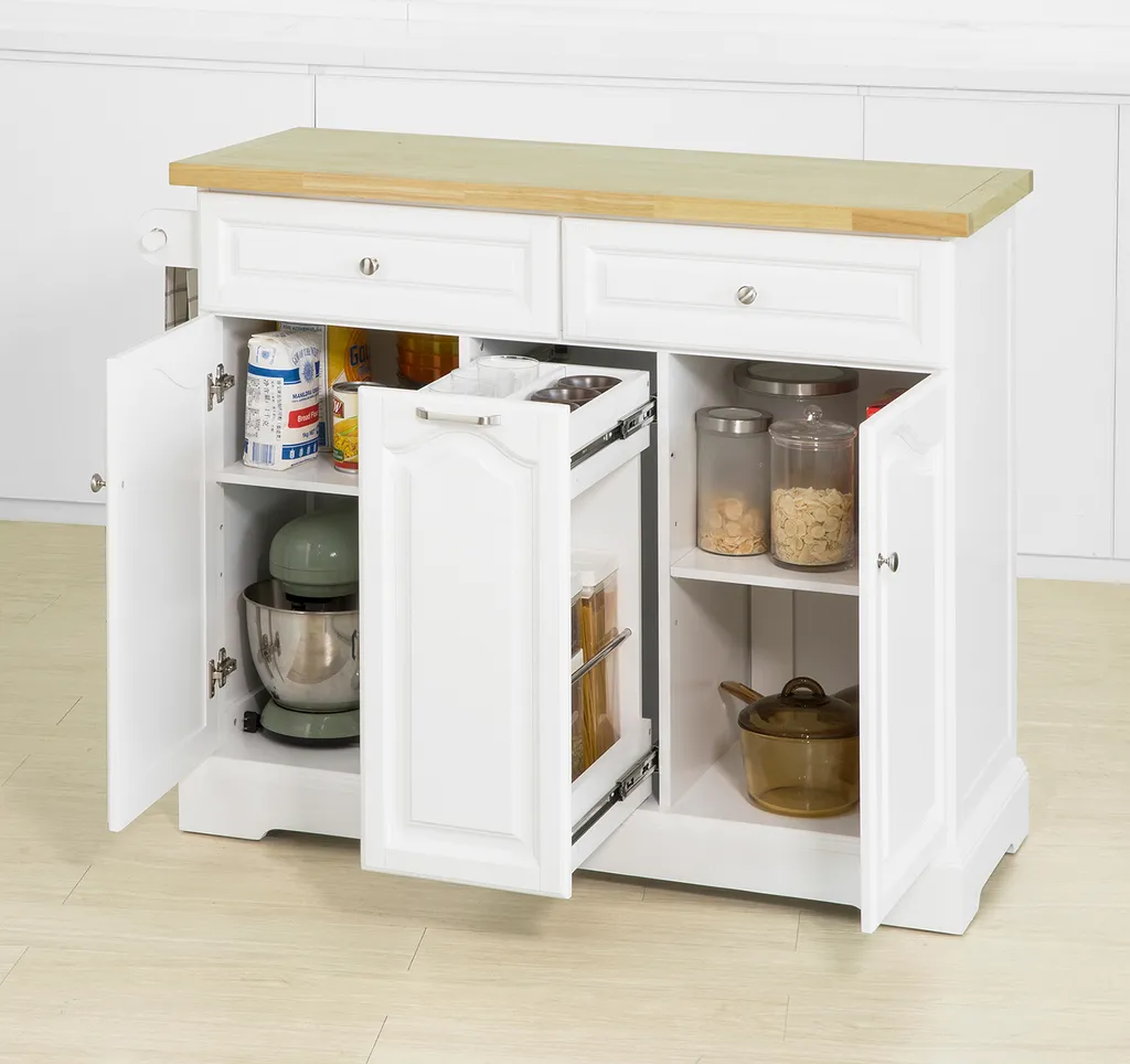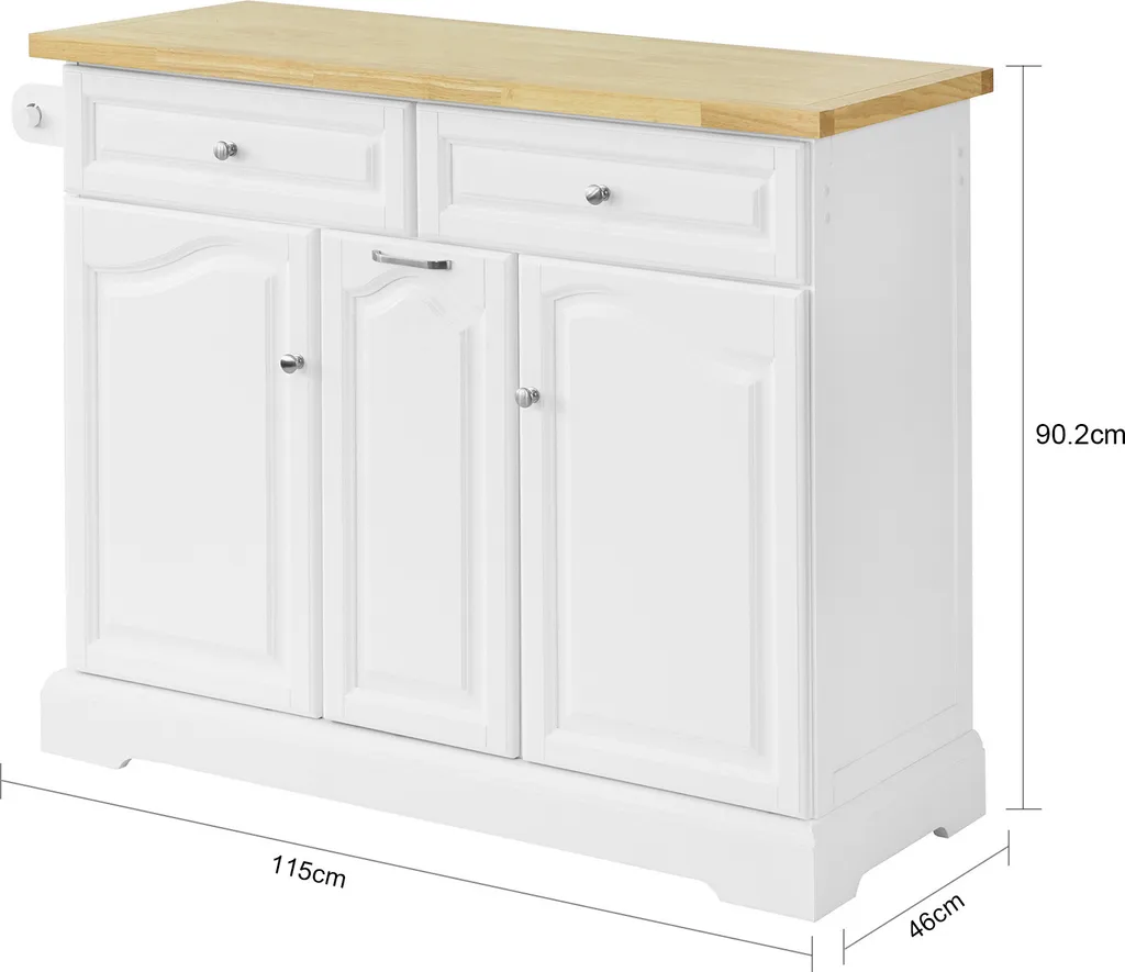 SoBuy FKW100-WN Kücheninsel Mit Arbeitsplatte Küchenwagen Mit 2 Türen Und Ausziehbarem Flaschenhalter Küchenschrank Sideboard Küchentrolley Weiß BHT Ca.: 115x90x46cm