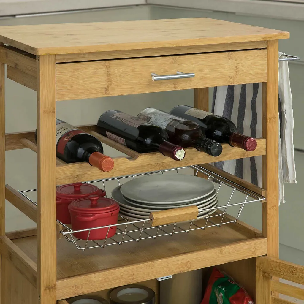 SoBuy® Servierwagen,Küchenwagen Mit Korb Und Flaschenablage,Bambus, FKW53-N