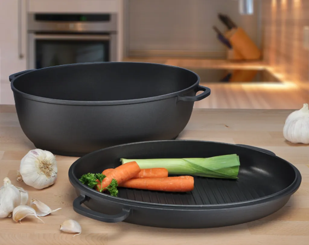 Universalbräter 7,5 L Alu-Gussbräter Multi-Grill-Bräter Deckel = Auflaufform
