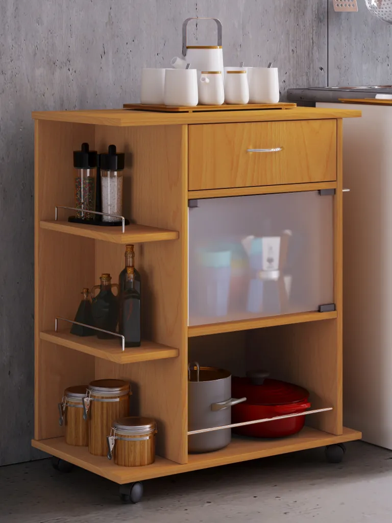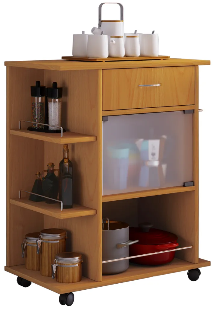 VCM Holz Küchenwagen Servierwagen Rollwagen Ablage Rollbar Rollen Schublade Pocis Buche