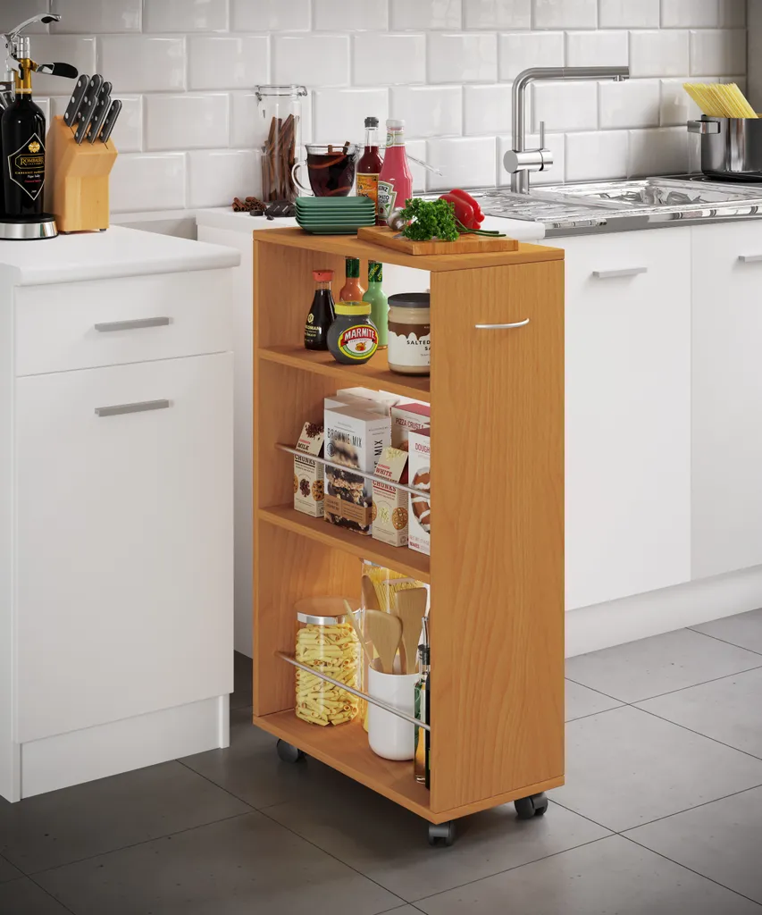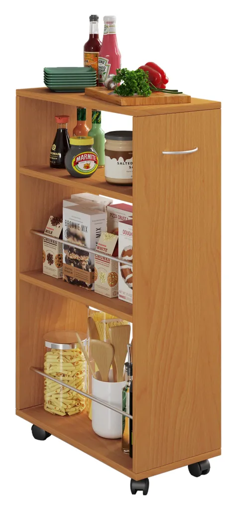 VCM Holz Küchenwagen Servierwagen Rollwagen Nischenschrank Rollbar Rollen Tusal Buche